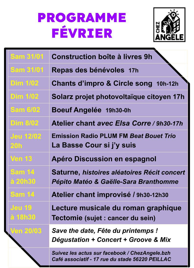 Accueil > Les nouvelles du coin > [Chez Angèle]- Programme de février