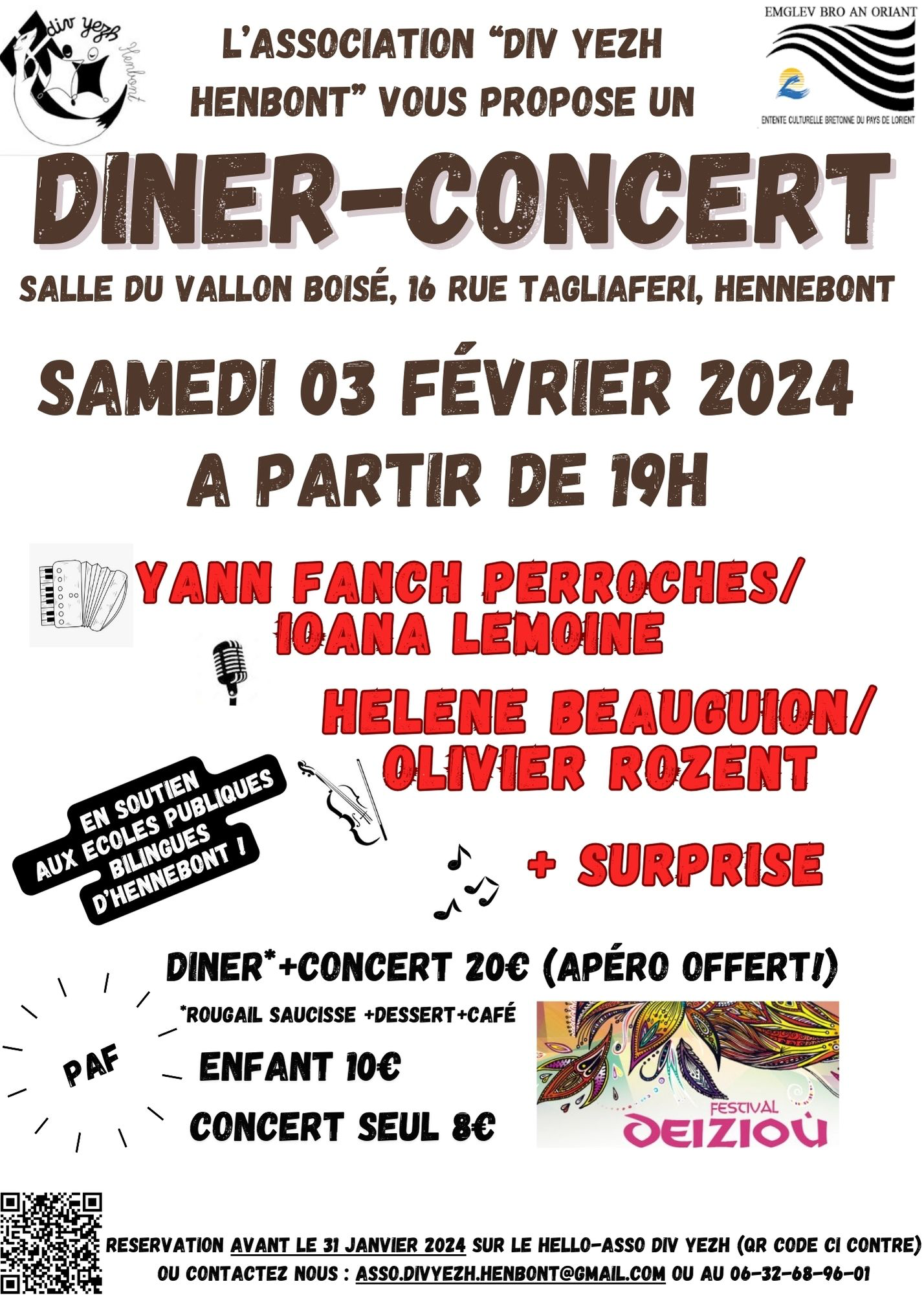 Réserver vos repas avant le 31 janvier sur le lien https://www.helloasso.com/associations/div-yezh-henbont/evenements/diner-concert, inviter vos amis, familles etc...