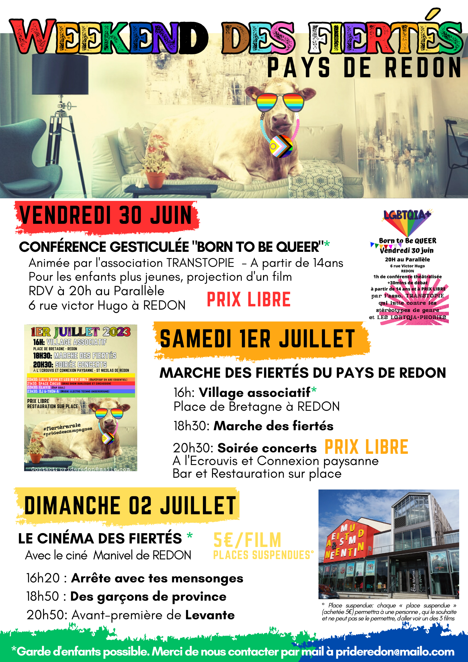 weekend des fiertés de Redon le samedi 1er juillet 2023 !
