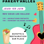 "Parents’Halles" un temps fort convivial et musical pour les enfants et les parents, sous Les Halles de Questembert, le jeudi 1 er juin de 17h à 21h00.