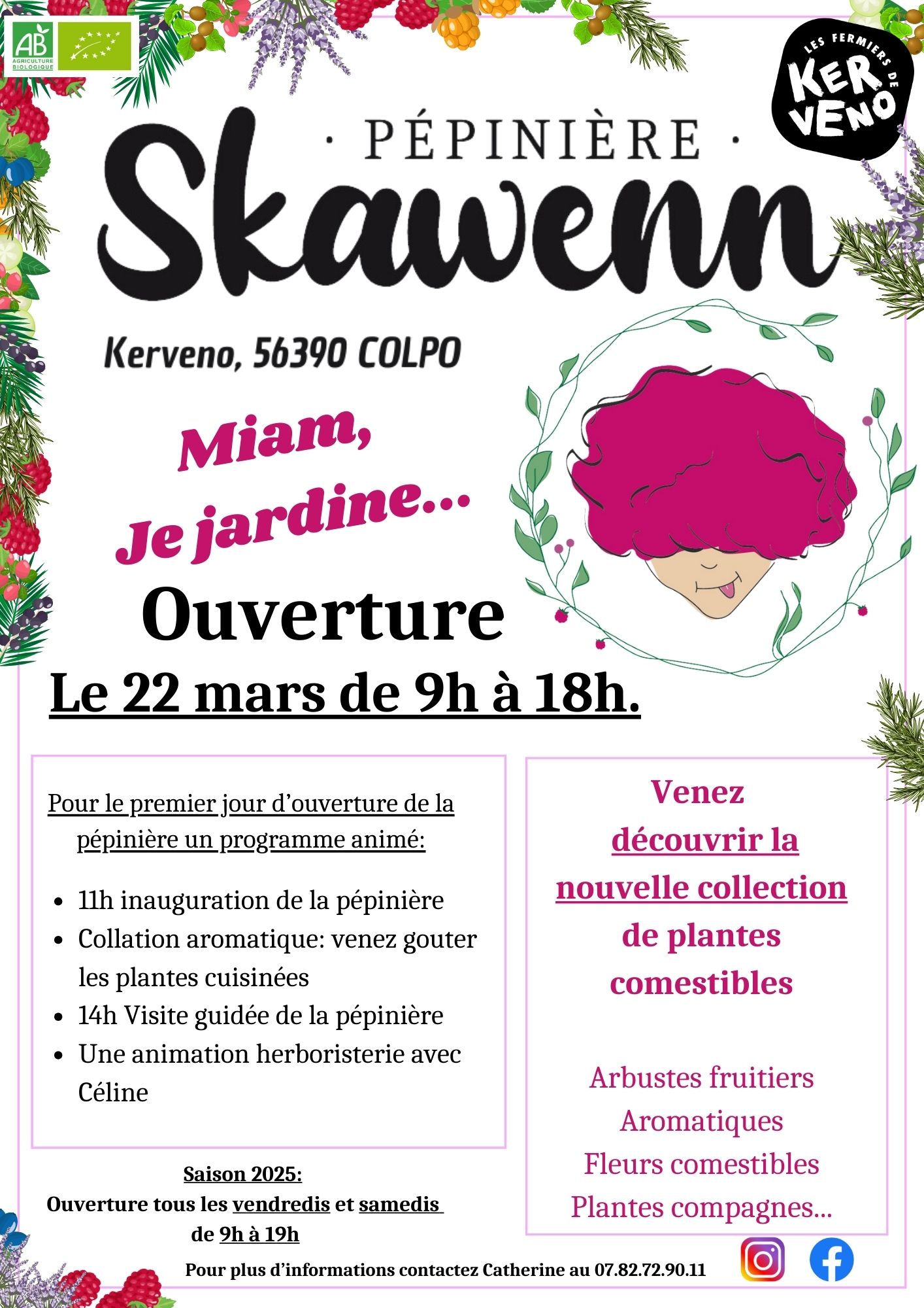 Le samedi 22 mars c’est l’inauguration de la pépinière Skawenn à Colpo.