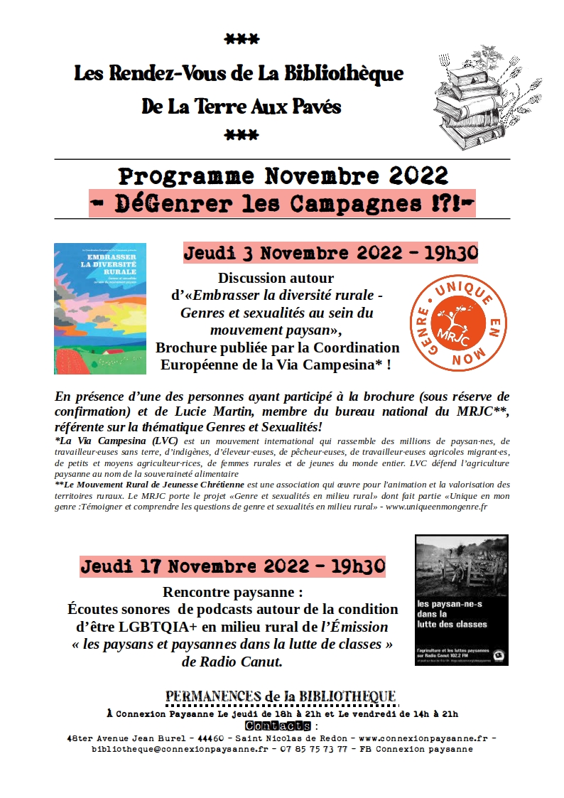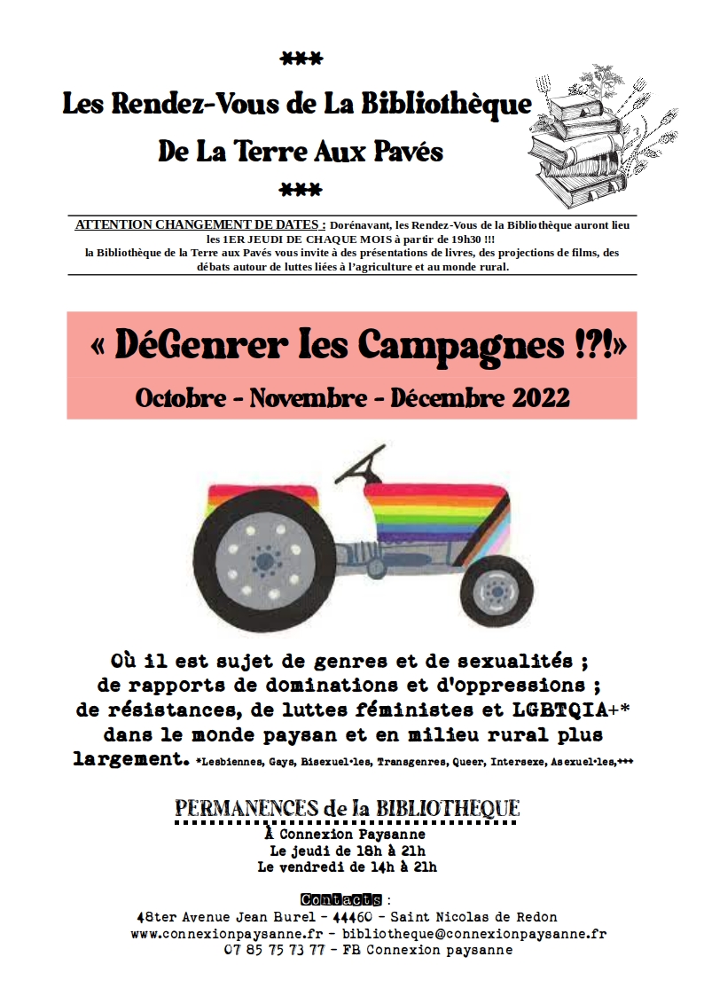 RAPPEL [Les Rendez-vous de la Bibliothèque de la Terre aux Pavés] Cycle "DéGenrer les Campagnes !?!" Jeudi 03 novembre : "Embrasser la diversité rurale" !!