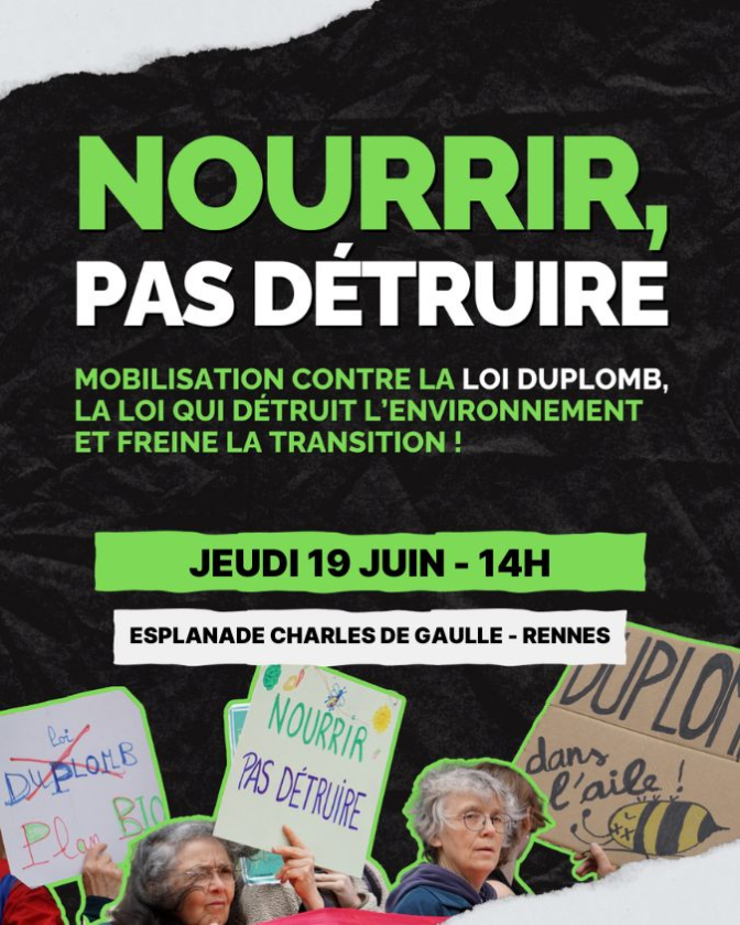 Appel à manifester contre le projet DUPLOMB jeudi 19 juin à Rennes