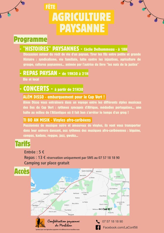 Accueil > Les nouvelles du coin > Fête de l’agriculture Paysanne- Samedi 9 juillet à Sarzeau