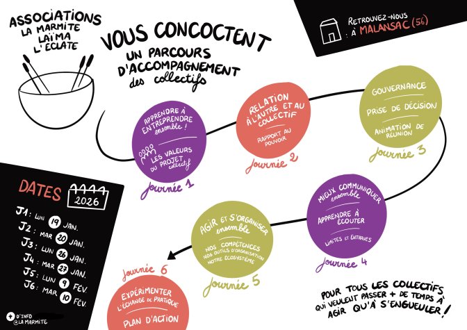 Les associations La Marmite, Laïma et L’éclate s’associent pour vous aider à acquérir de l’agilité dans le fonctionnement quotidien du collectif et renforcer vos liens.