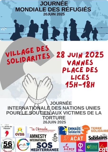 A Vannes PLACE DES LICES 15h/18h : village des solidarites à l’occasion de la journée internationale pour le soutien aux victimes de la torture