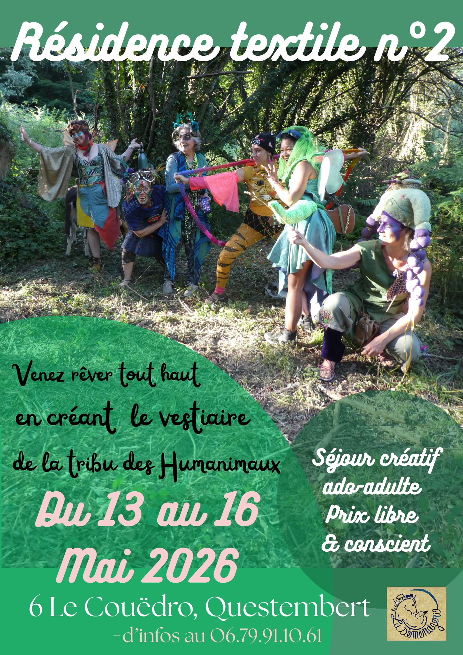 Pour cette 2e Résidence textile, nous donnerons corps et vie à ces humain.es du futur en créant leur vestiaires de festivités chamaniques !