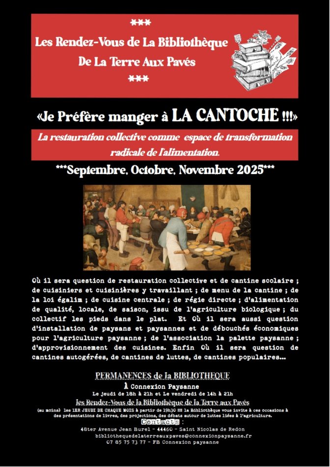 Accueil > Les nouvelles du coin > [Les RDV de la Bibliothèque de la Terre aux Pavés] Je préfère la Cantine - (…)