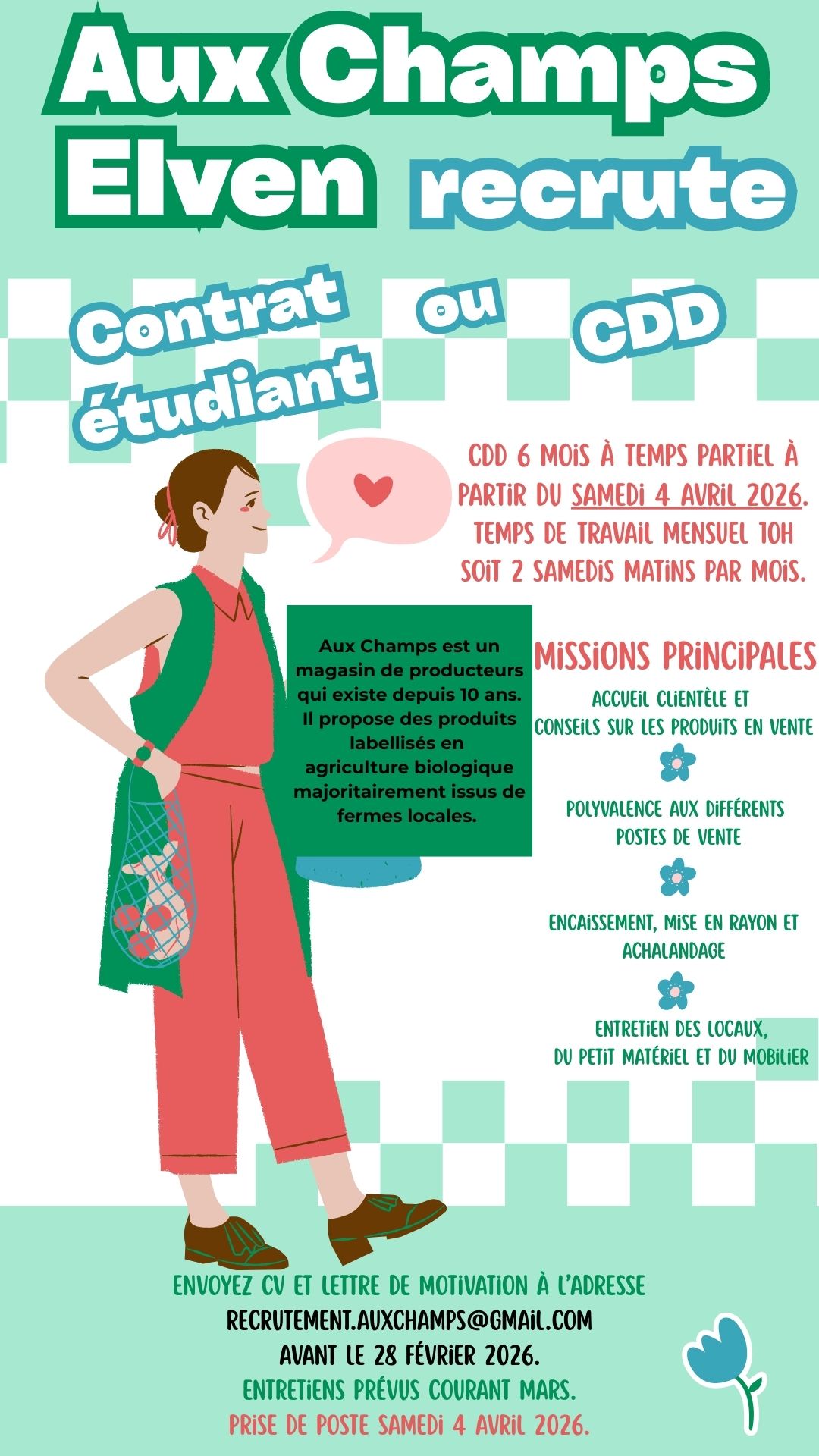 Le magasin a besoin d’un coup de main les samedis matin et nous sommes à la recherche d’un employé les samedis matins.
