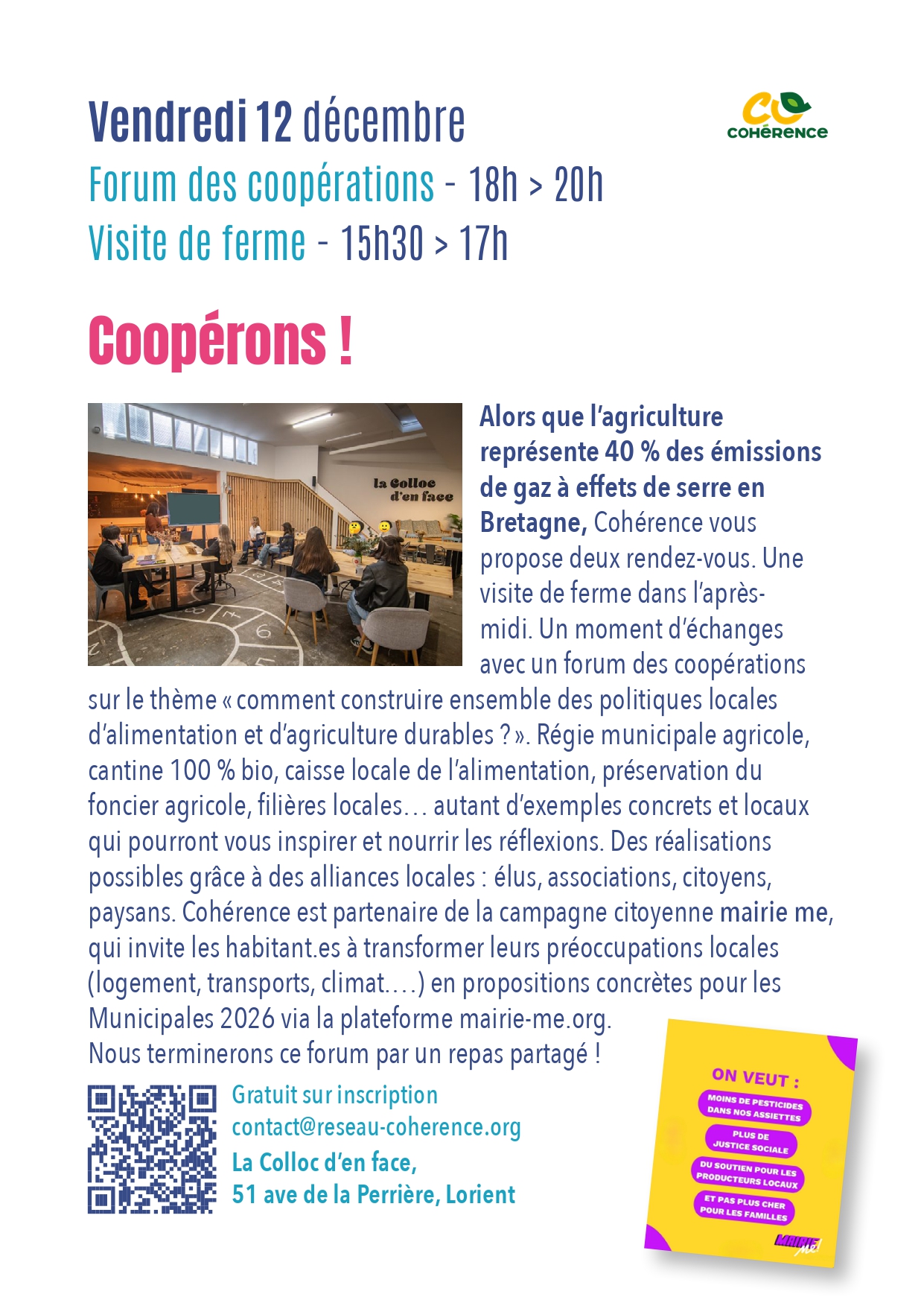 [Réseau Cohérence] - Municipales 2026, événement "Comment construire ensemble des politiques locales d’alimentation et d’agriculture durables ?", vendredi 12 décembre