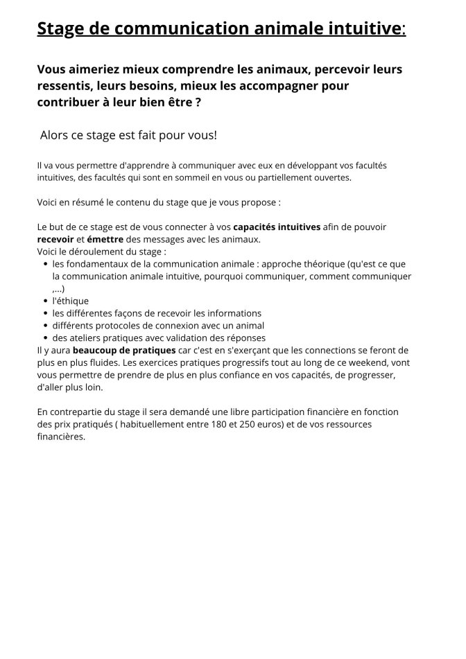Accueil > Les nouvelles du coin > Stage de communication animale