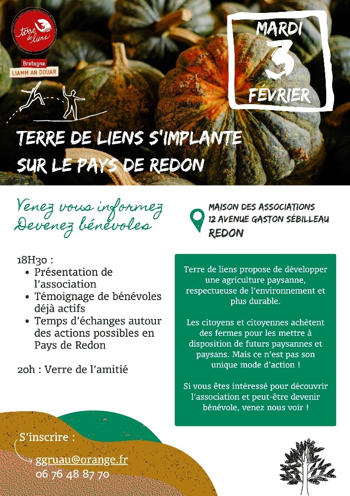 Pour information nous vous annonçons la création d’un groupe de bénévoles Terre de Liens sur le secteur de Redon.