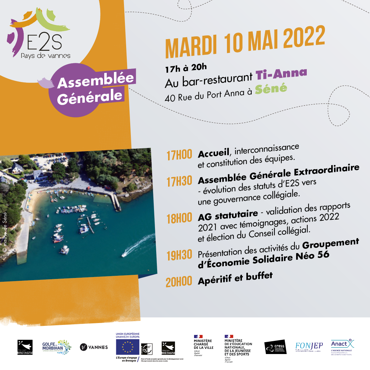 E2S Pays de Vannes, Pôle de développement de l’Économie Sociale et Solidaire tiendra son Assemblée Générale le 10 mai prochain -invitation ci dessous.