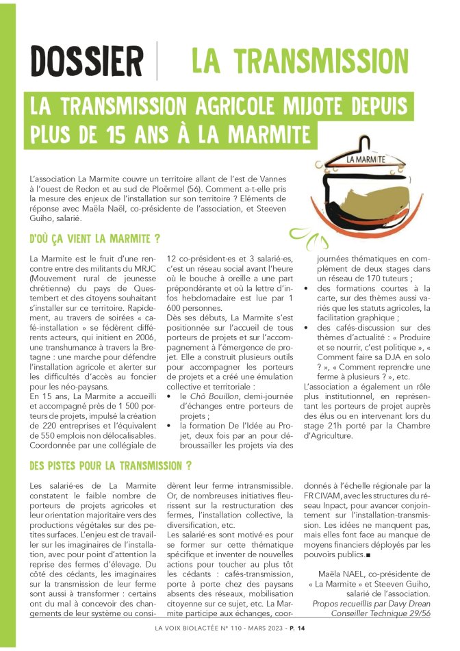 Accueil > L’Association > Ça cause de la Marmite ! > Article - Mars 2023 - La Voix Biolactée (n° 110) Biolait