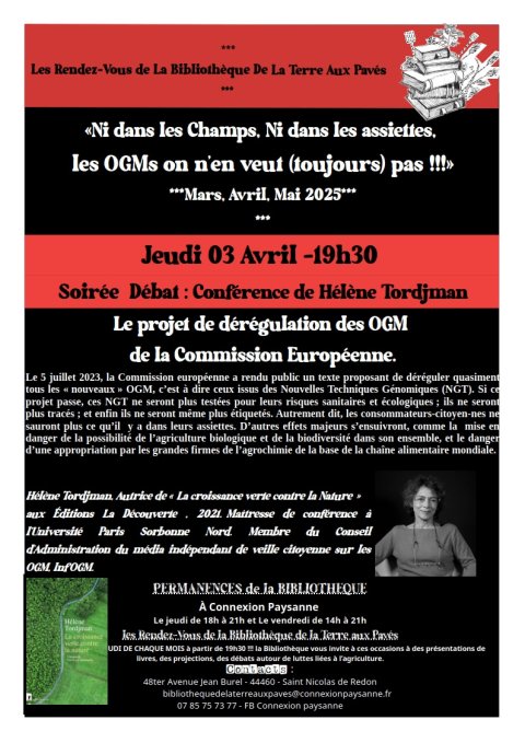 [Bibli Terres aux Pavés] Jeudi 03 Avril - 19h30 Soirée Débat OGM