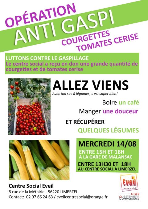 Vous pourrez soit venir en chercher au centre social à 13h30 soit à Malansac au niveau de la gare à partir de 15h et dans les deux cas jusqu’à 18h.