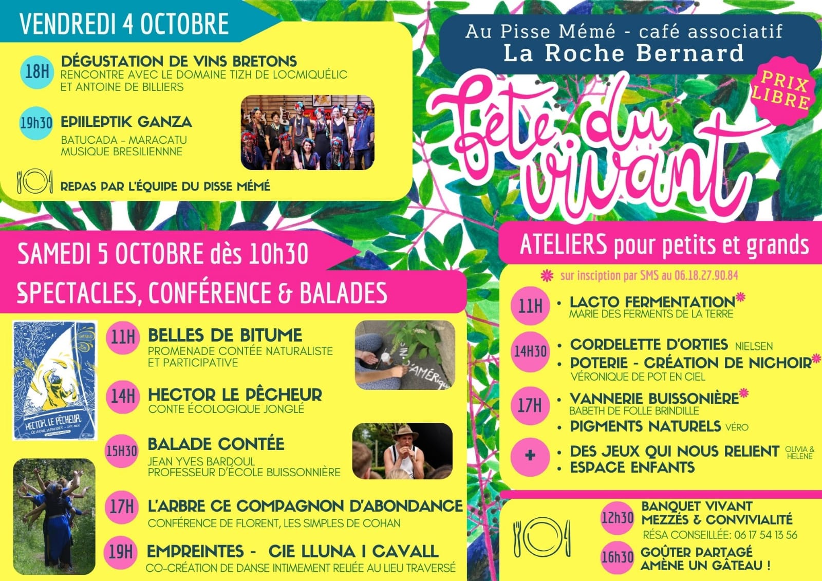 Nous organisons notre 3ème édition de la fête du vivant le vendredi 4 et 5 octobre prochain dans la cour du pisse mémé.