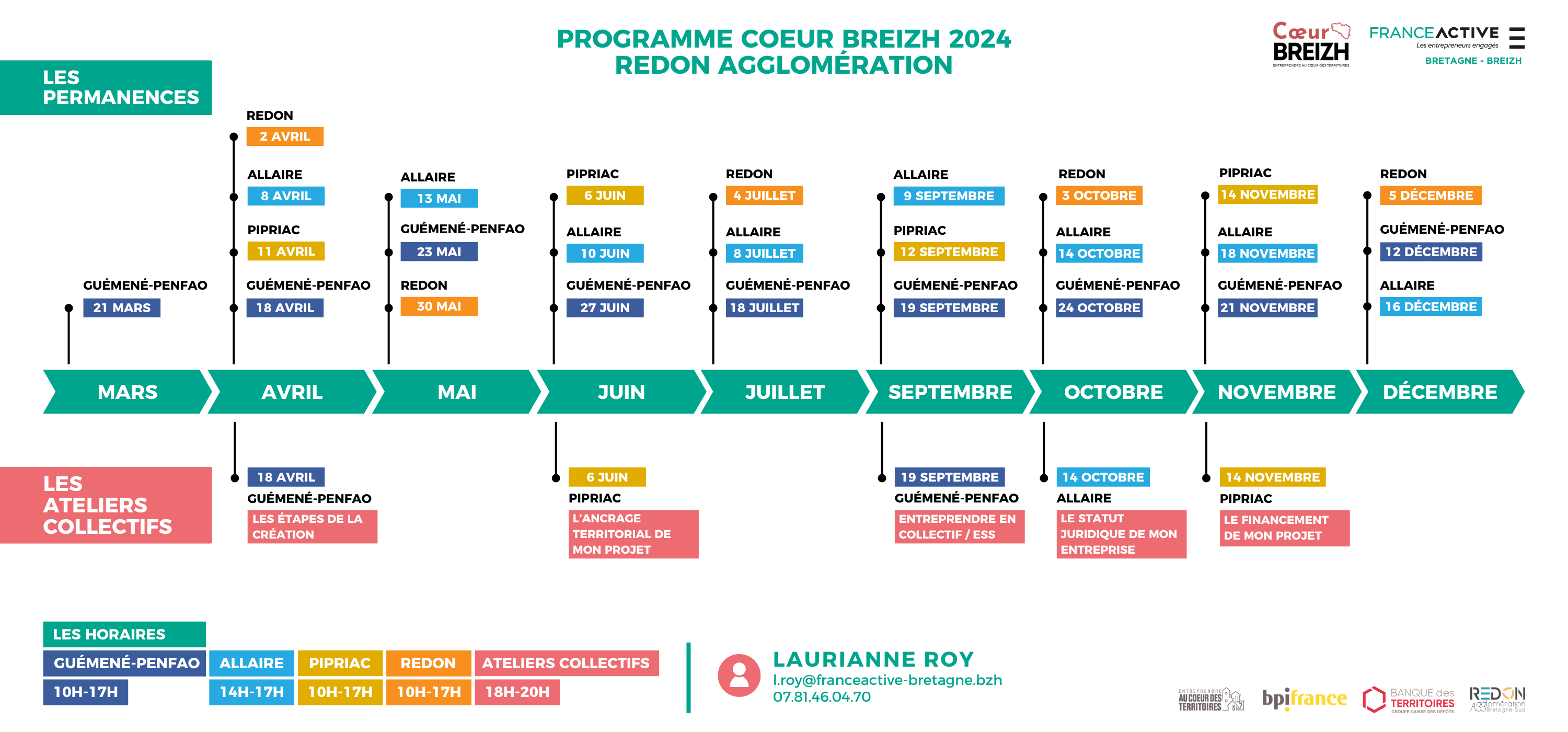 Dans le cadre du programme "Cœur Breizh - Entreprendre au cœur des territoires", France Active Bretagne propose un cycle de 5 ateliers collectifs sur le territoire de Redon Agglomération tout au long de l’année 2024.