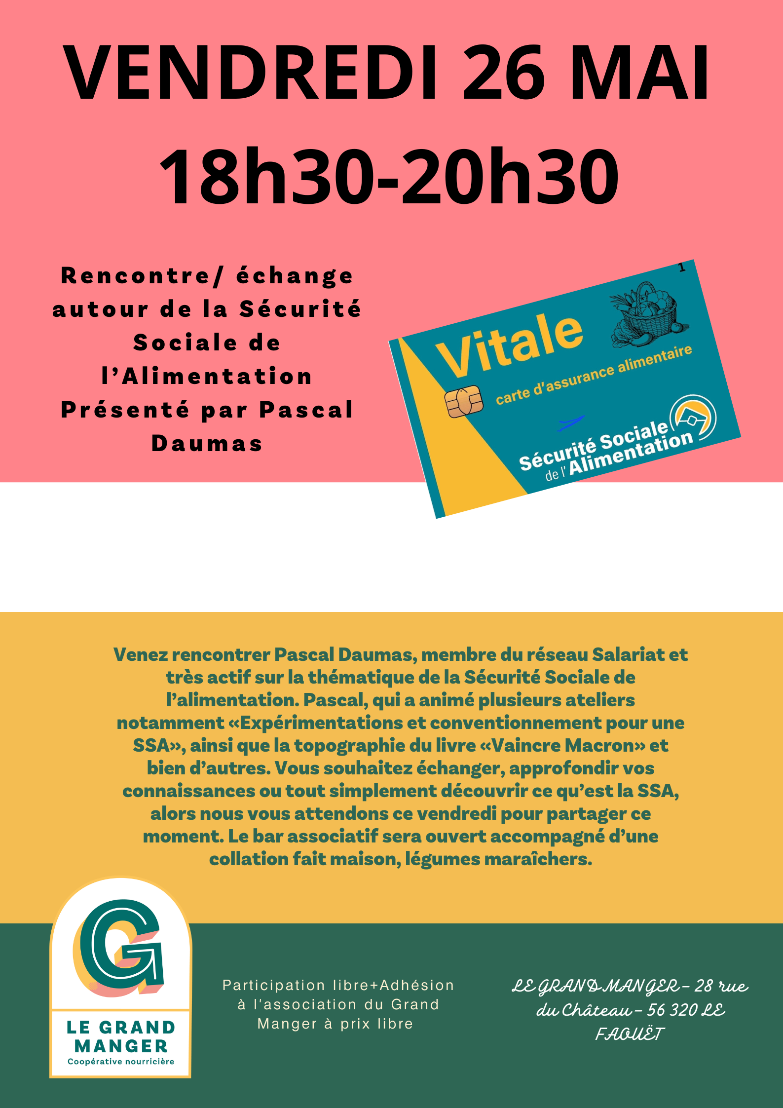 Envie de découvrir et d’en apprendre plus sur la SSA ? Alors RDV ce vendredi pour échanger avec Pascal Daumas autour de cette thématique. Le Bar associatif sera ouvert ainsi qu’une collation préparée avec des produits locaux par Pascal et son équipe.