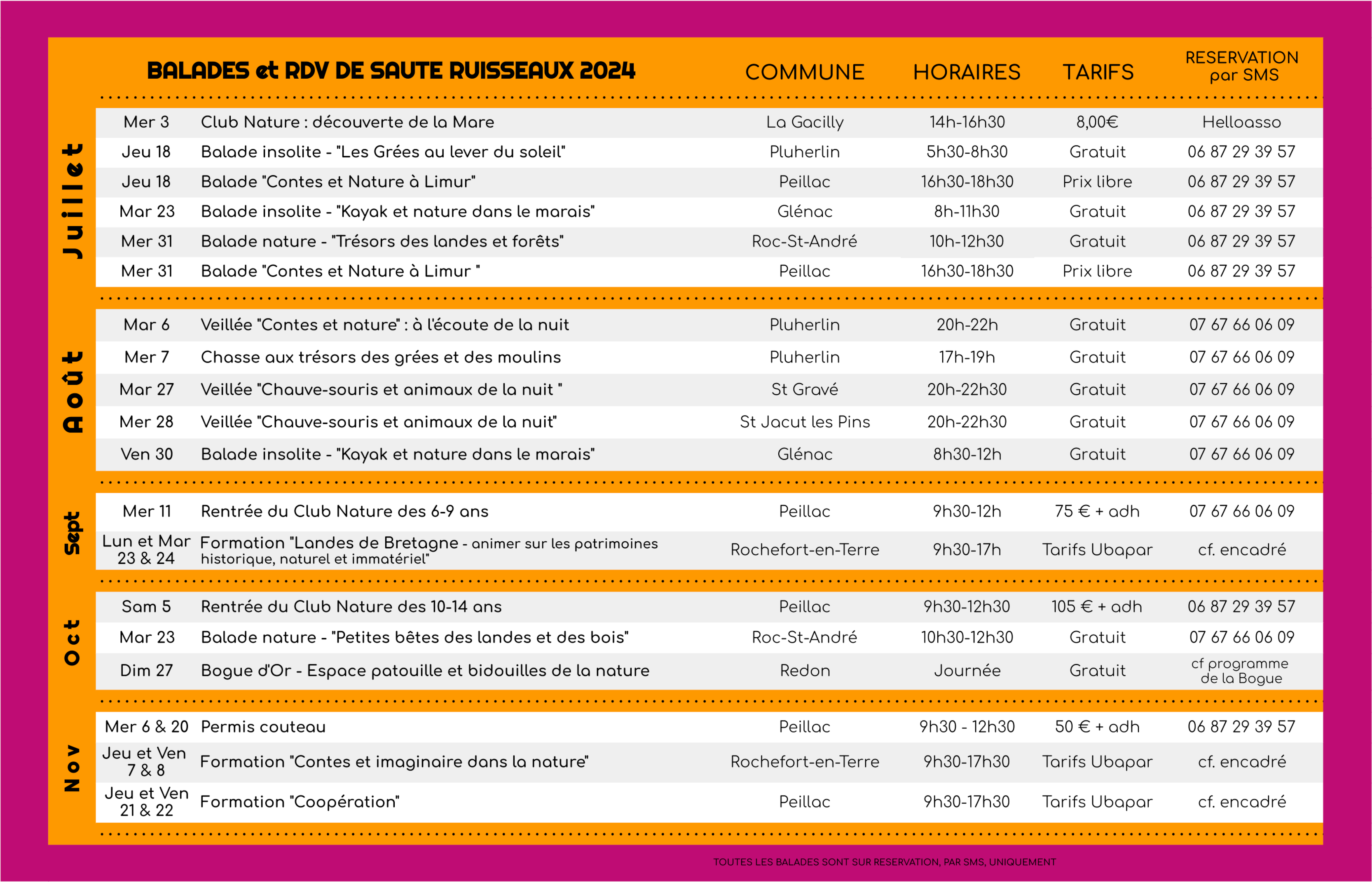 [SAUTE RUISSEAUX]- Programme de l’été !