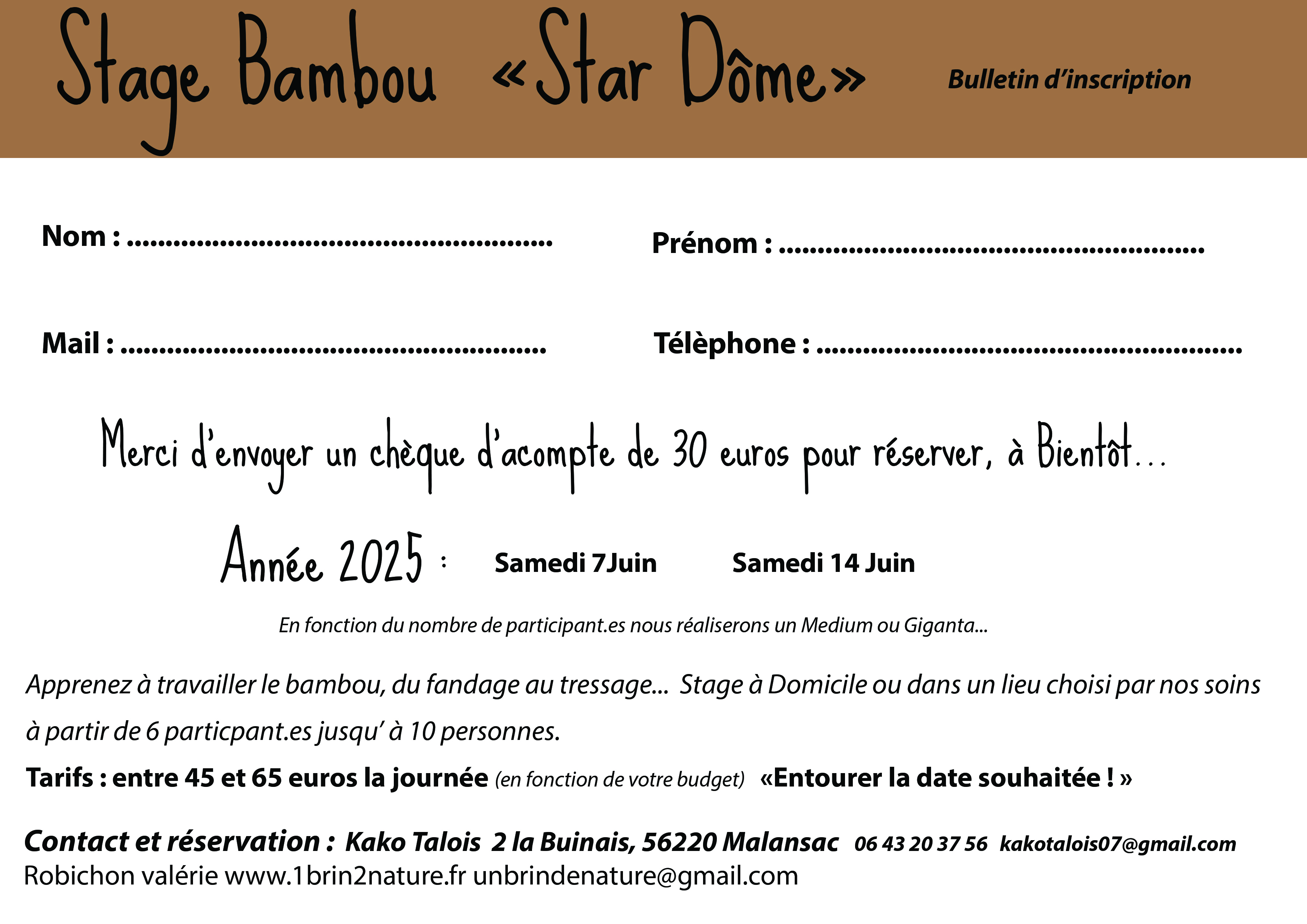 Stage Bambou "Star Dôme" les 7 et 14 juin